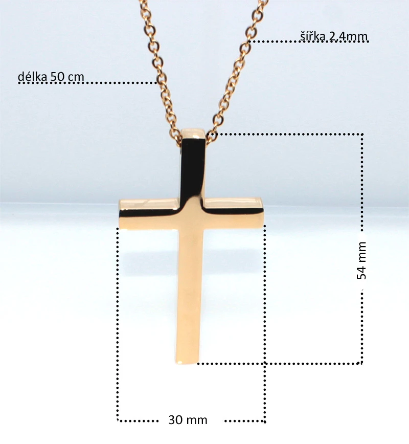 Prívesok krížik s oceľovým retiazkou. Ako všetky šperky zhotovené z materiálu chirurgická oceľ, je tiež tento prívesok odolný proti poškodeniu, nevyvoláva alergické reakcie, neoxiduje. Chirurgická oceľ nemení farbu. Vďaka týmto vlastnostiam a prijateľnej cene sa oceľové šperky tešia stále značne vysokej popularite v stále sa rozširujúcich radoch spokojných užívateľov.