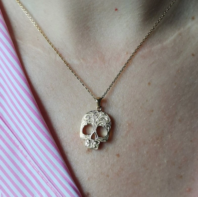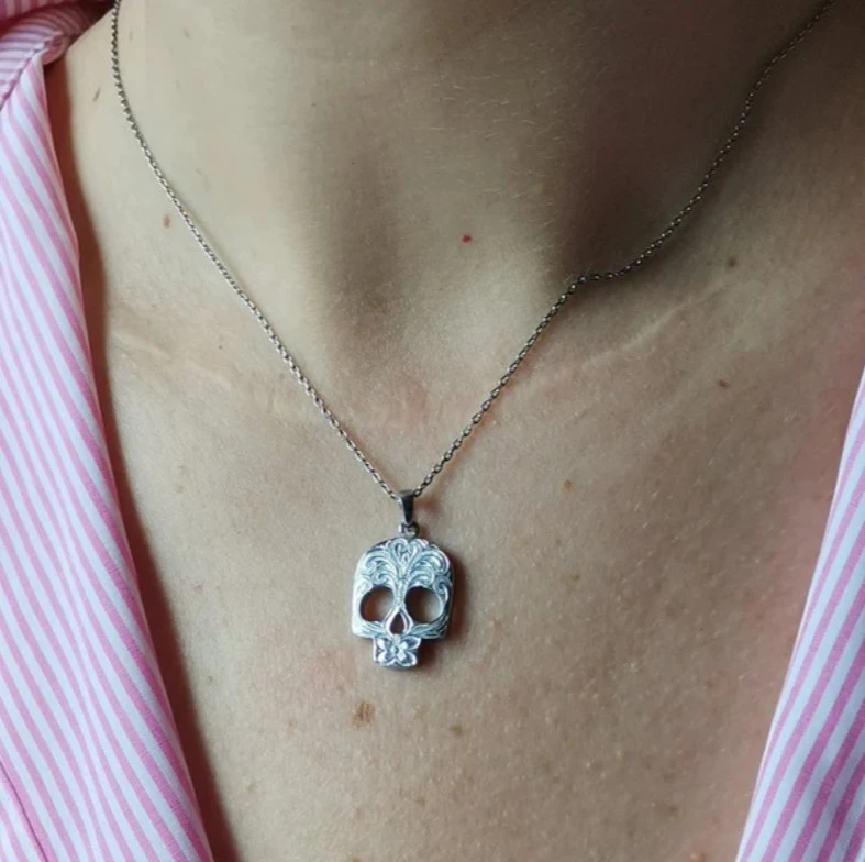 Náhrdelník z chirurgickej ocele lebka. Motív lebky v sebe nesie hlboký význam a silnú symboliku naprieč všetkými kultúrami. Ako šperk môže vyjadrovať rôzne aspekty ľudskej existencie. Lebka je tiež výrazným motívom vyjadrením individuality a pre svojich nositeľov môže mať osobný význam. Šperky z chirurgickej ocele sú veľmi odolné a trvanlivé, čo podčiarkuje symboliku stálosti a trvalosti. Lebka ako šperk z chirurgickej ocele je viac ako len módny doplnok. Je to symbol s hlbokým významom, ktorý môže byť výrazom osobnosti, viery alebo jednoducho estetického vkusu. Svojím spojením s odolnosťou a moderným designom ponúka unikátny spôsob, ako vyjadriť svoju individualitu.