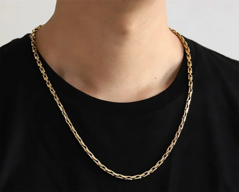 Štýlový náhrdelník z chirurgickej ocele. Povrch náhrdelníka je leštený. Náhrdelník je široký 4mm, dĺžka 60cm. Zapínanie náhrdelníka je karabínové. Dĺžku náhrdelníka je možné na prianie zadarmo skrátiť.