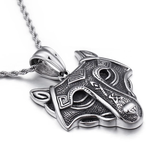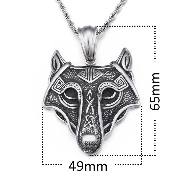 Oceľový náhrdelník s vlčí hlavou. Vlčí hlava predstavuje symbol sily a mužnosti. V severskej mytológii sprevádzali boha Ódina vždy dvaja vlci. Ako všetky oceľové šperky je tiež tento náhrdelník z chirurgickej ocele odolný proti poškodeniu, neoxiduje, nemení farbu a nevyvoláva alergické reakcie.