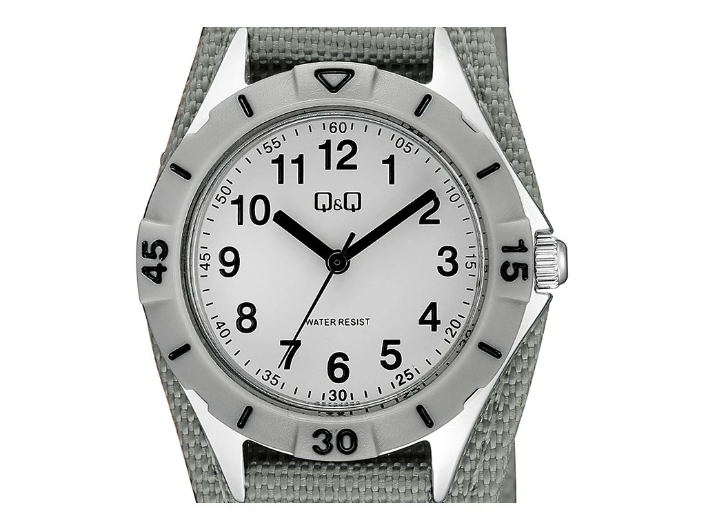 Športové hodinky s nylonovým remienkom na suchý zips. Kovové puzdro hodiniek má priemer 30mm. Šedý ciferník s čiernym číselníkom má priemer 20mm. Hodinky sú vybavené hodinovou, minútovou a sekundovou rúčkou. Pohon hodiniek zaisťuje spoľahlivý batériový strojček. Hodinky sú vodeodolné na úrovni 3ATM a môžu teda prísť do styku s vodou. Jednoduché hodinky s prehľadným ciferníkom, ktoré sa vďaka pohodlnému nylonovému remienku ľahko nosia.