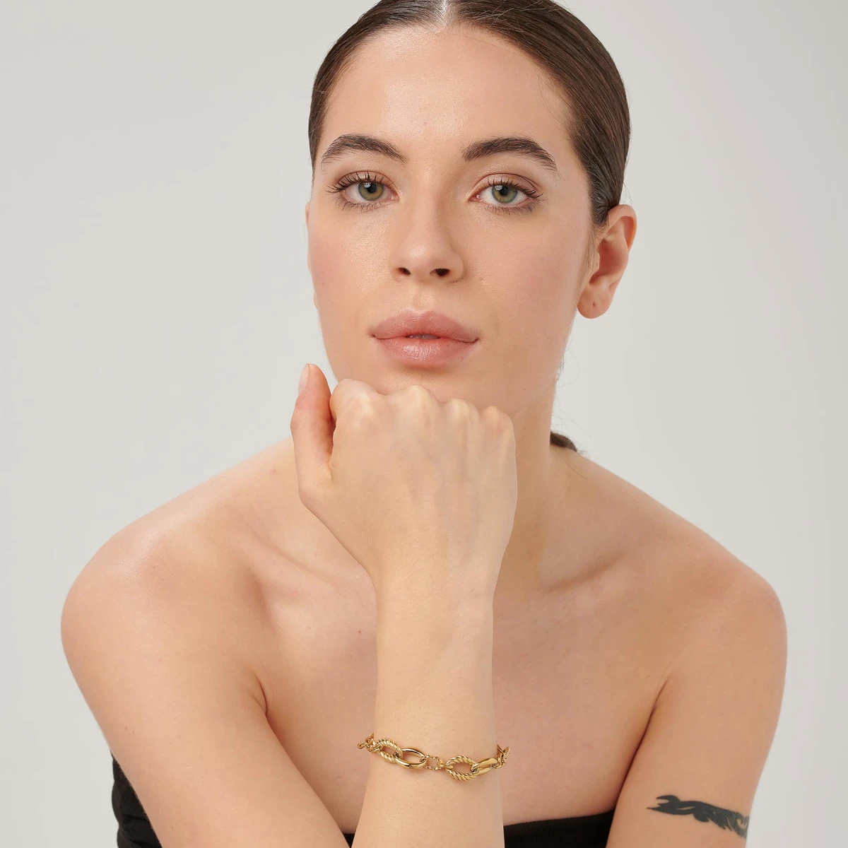 Dámsky náramok z chirurgickej ocele pozlátený technológiou PVD. Elegantný nadčasový náramok, ktorý vďaka kvalitnej chirurgickej oceli vydrží dlhú dobu. Náramkové zapínanie je karabínové, dĺžka náramku 19,5 cm.