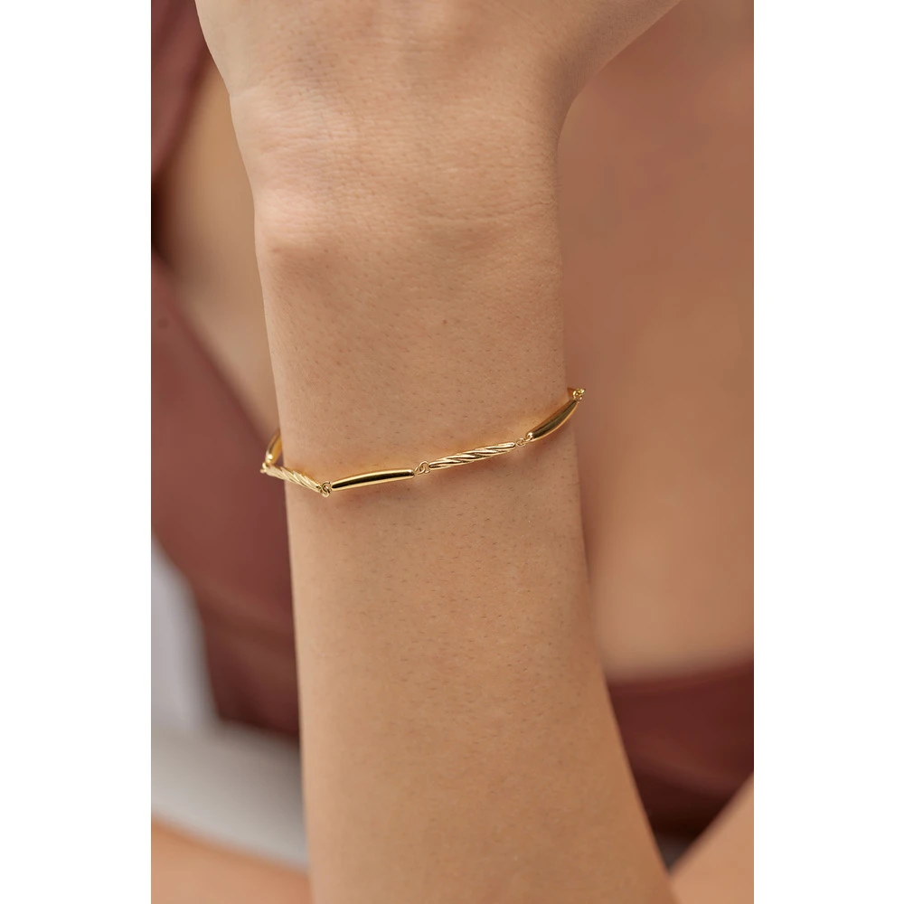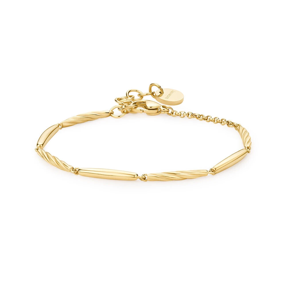 Náramok Brosway z kolekcie Amy je vyrobený z chirurgickej ocele v zlatej úprave. Šperky vyrobené z chirurgickej ocele sú odolné proti poškriabaniu, nemenia farbu, neoxidujú, nevyvolávajú alergické reakcie ani nereagujú na pot a prach. Zapínanie náramku je karabínové. Dĺžka náramku 18,5 cm.