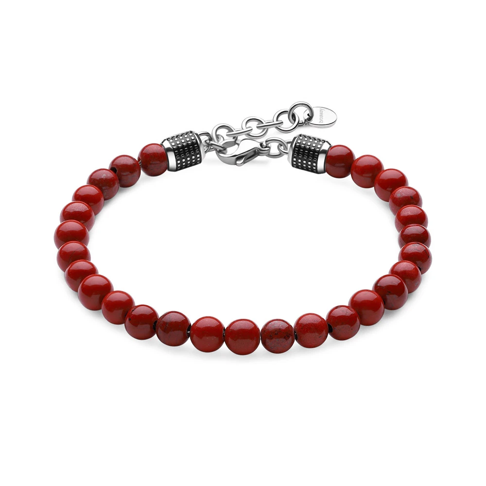 Pánsky náramok z chirurgickej ocele 316L a jaspisu. Červené korálky sú z jaspisu, zapínanie náramku je zo smaltovanej chirurgickej ocele 316L. Náramok je dlhý 21cm.
