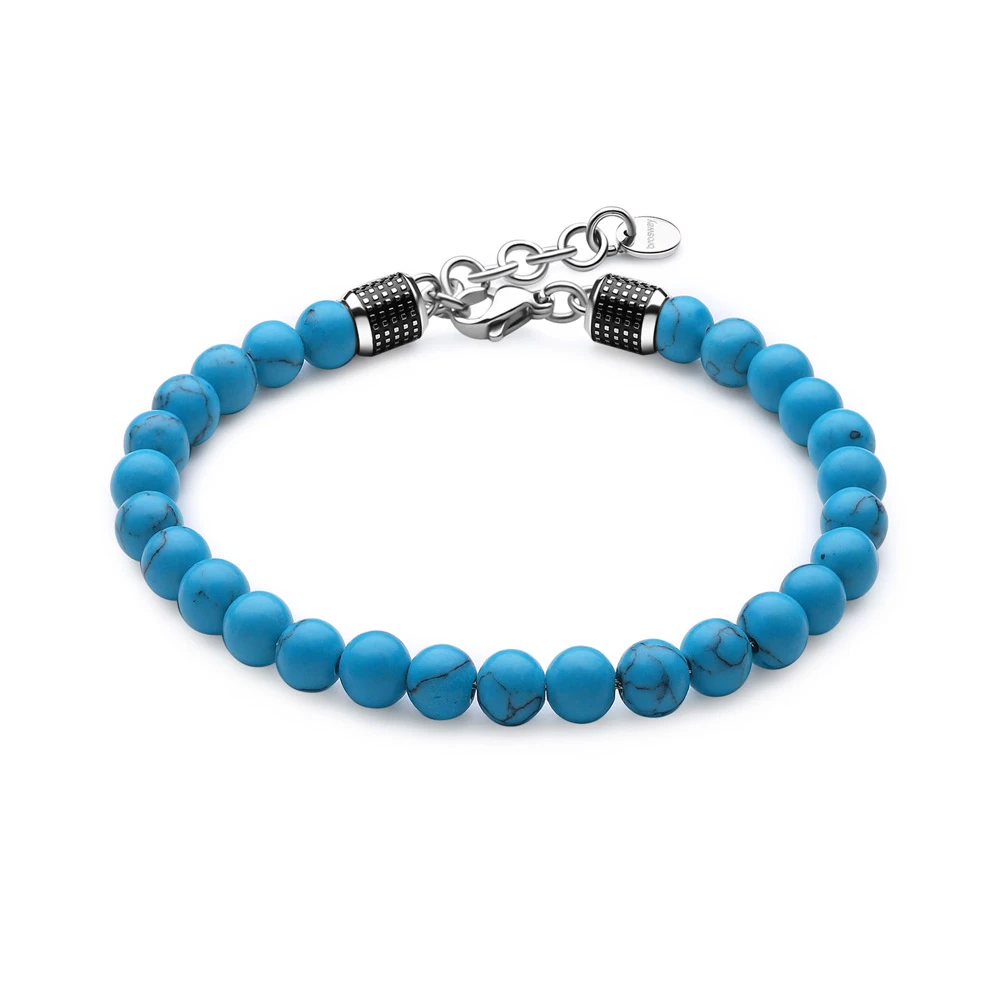 Pánsky náramok Brosway z chirurgickej ocele 316l a brúsených tyrkysových korálikov. Dĺžka náramku 21 cm.