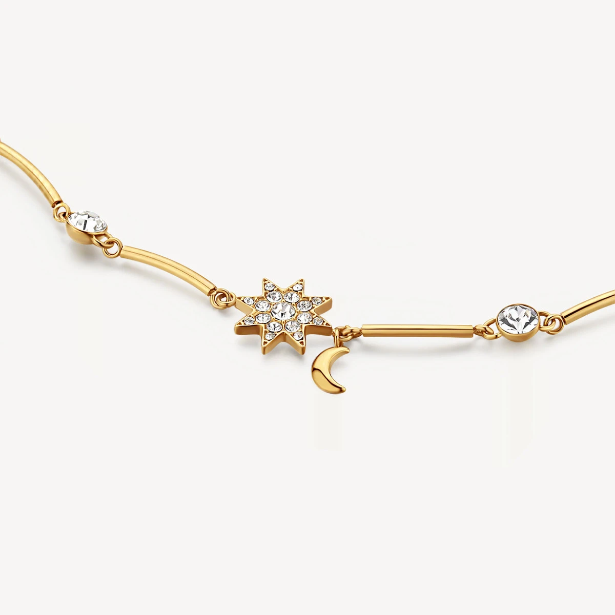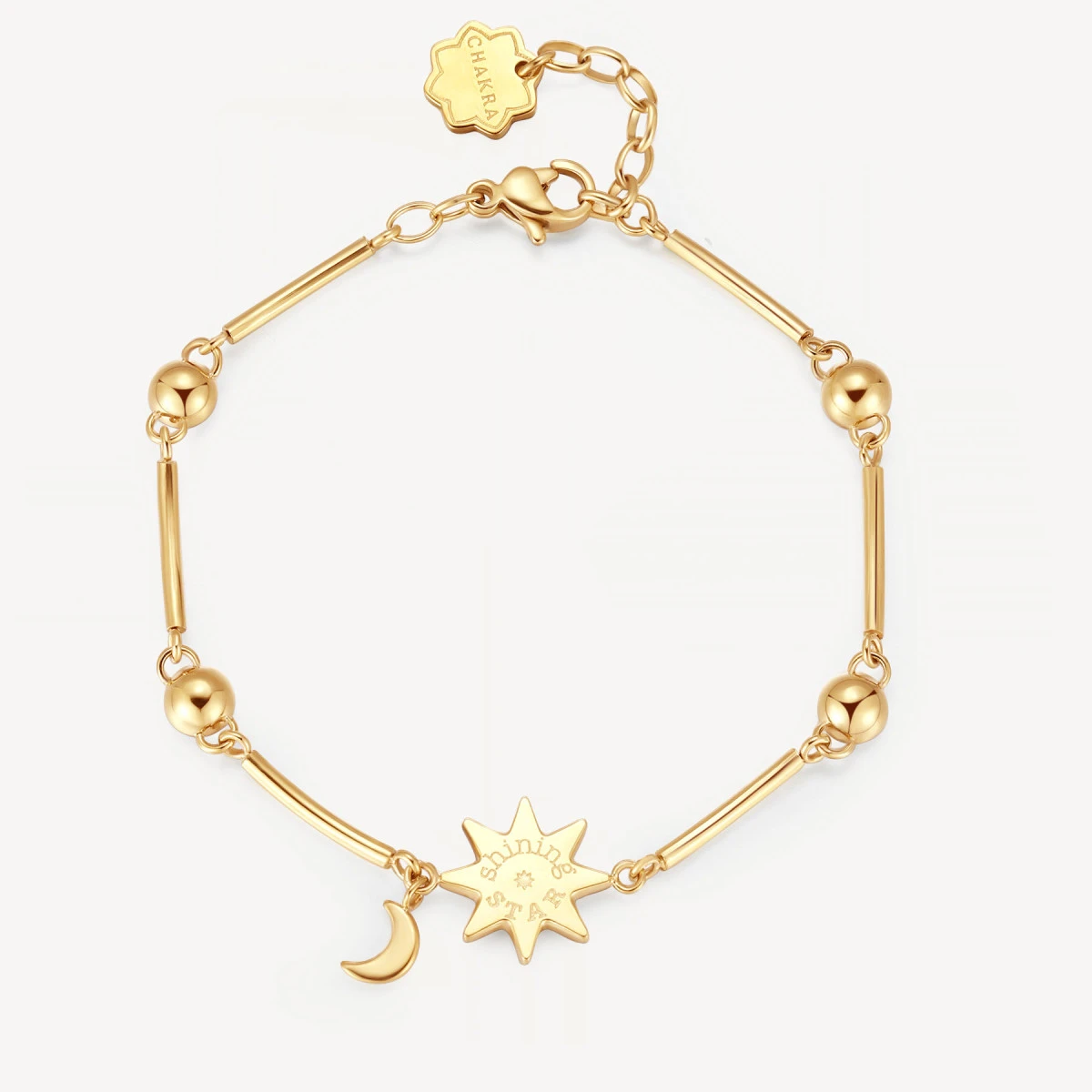 Náramok Brosway z kolekcie CHAKRA zdobený hviezdou a nechtíkom s kryštálmi je vyrobený z chirurgickej ocele a je pozlátený technológiou PVD. Šperky vyrobené z chirurgickej ocele sú odolné proti poškriabaniu, nemenia farbu, neoxidujú, nevyvolávajú alergické reakcie ani nereagujú na pot a prach. Zapínanie náramku je na karabínku. Dĺžka náramku je 17,5 cm.