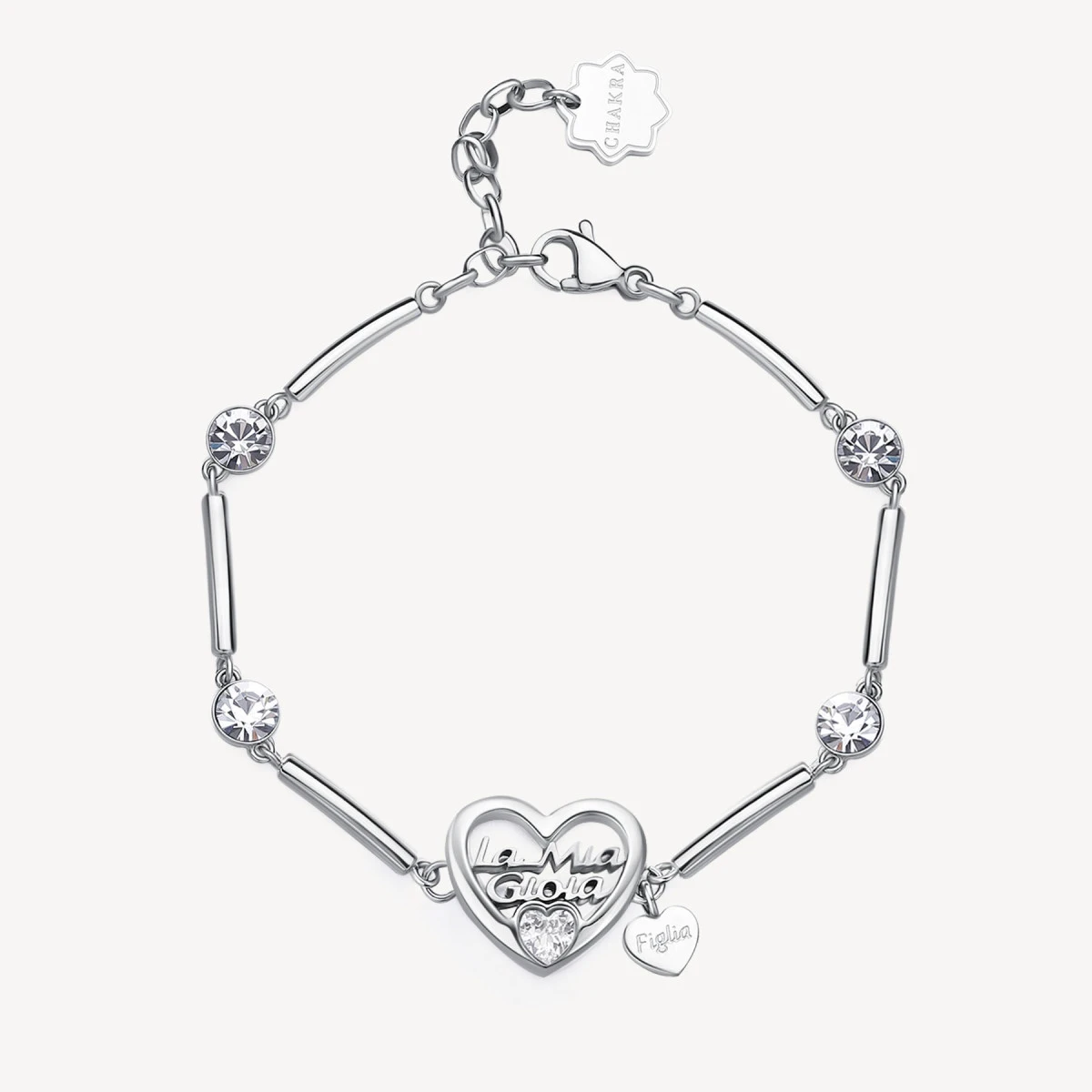 Dámsky náramok z chirurgickej ocele z kolekcie Chakra. Povrch náramku je leštený. Náramok je osadený prvotriednymi zirkónmi. Zapínanie náramku je karabínové. Dĺžka náramku 18,5 cm.