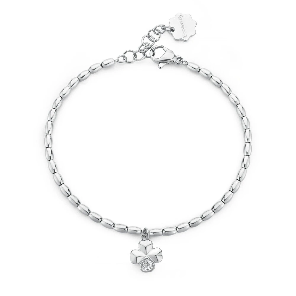 Dámsky náramok z chirurgickej ocele s lešteným povrchom. Elegantný nadčasový náramok s príveskom štvorlístka, ktorý vďaka kvalitnej chirurgickej oceli vydrží dlhú dobu. Náramkové zapínanie je karabínové, dĺžka náramku 18cm.