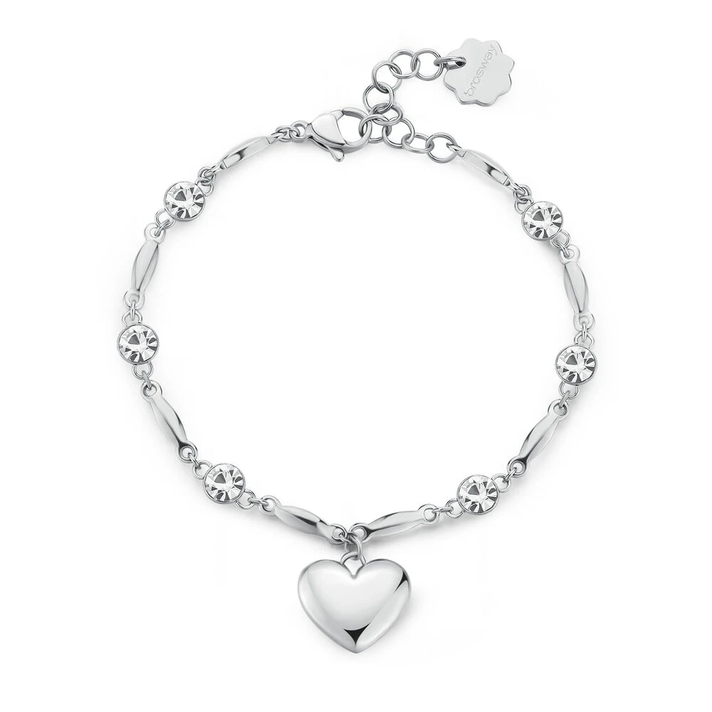Náramok Brosway z kolekcie CHAKRA zdobený príveskom srdca a kryštálmi je vyrobený z chirurgickej ocele. Šperky vyrobené z chirurgickej ocele sú odolné proti poškriabaniu, nemenia farbu, neoxidujú, nevyvolávajú alergické reakcie ani nereagujú na pot a prach. Zapínanie náramku je na karabínku. Dĺžka náramku je 18 cm.