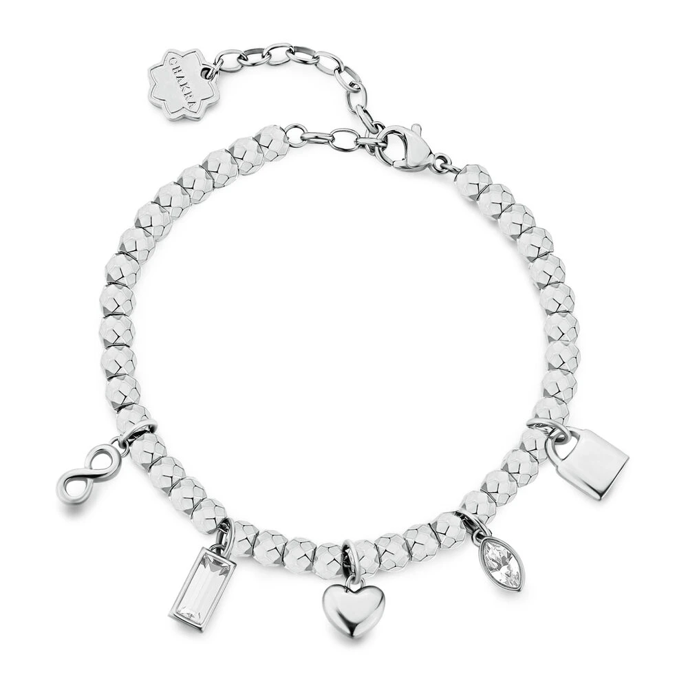 Náramok Brosway z kolekcie Chakra zdobený príveskami s kryštálmi je vyrobený z chirurgickej ocele. Šperky vyrobené z chirurgickej ocele sú odolné proti poškriabaniu, nemenia farbu, neoxidujú, nevyvolávajú alergické reakcie ani nereagujú na pot a prach. Zapínanie náramku je na karabínku. Dĺžka náramku je 18 cm.