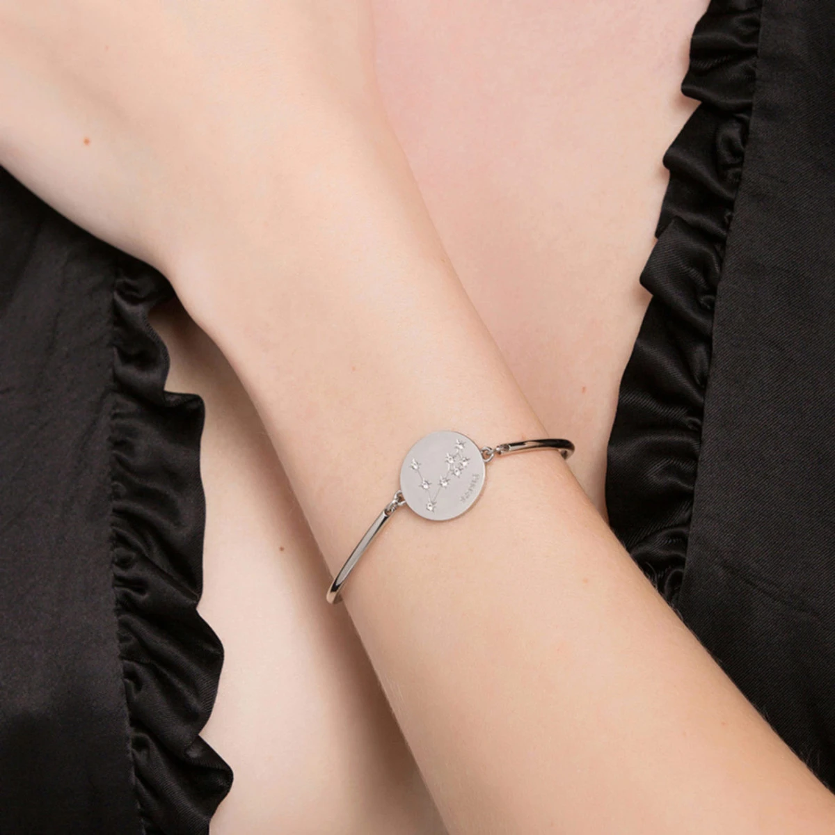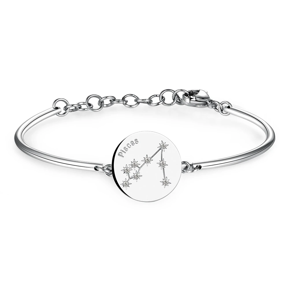 Oceľový náramok Brosway so znamením rýb (18.2-19.3). Povrch náramku je leštený. Hviezdy zo súhvezdia sú zastúpené žiarivými kryštálmi. Ozdoba náramku so znamením má priemer 17 mm. Náramok má karabínové zapínanie. Dĺžku náramku je možné plynule nastaviť v rozmedzí 15-18 cm.