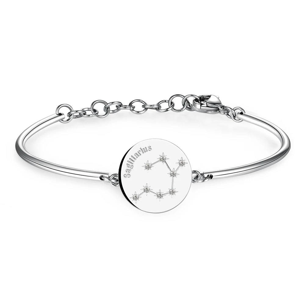 Náramok z chirurgickej ocele Brosway so znamením Strelec (23.11-21.12). Povrch náramku je leštený. Hviezdy zo súhvezdia sú zastúpené žiarivými kryštálmi. Ozdobná časť náramku so znamením má priemer 17 mm. Náramok má karabínové zapínanie. Dĺžku náramku je možné plynule nastaviť v rozmedzí 15-18 cm.