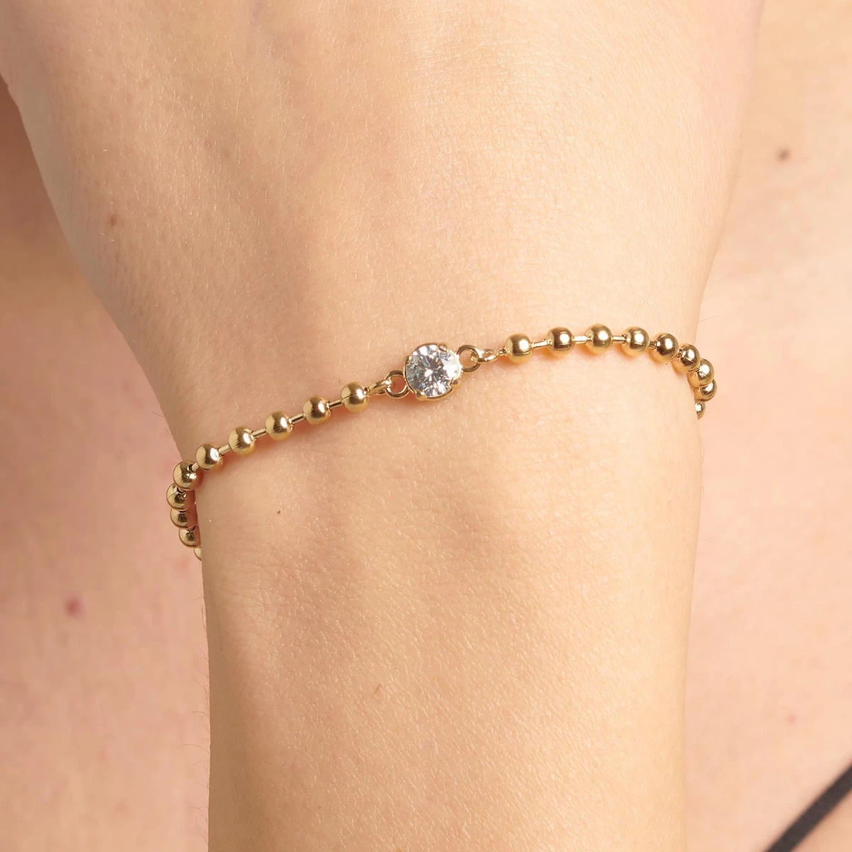 Dámsky náramok z chirurgickej ocele 316L s ozdobou štvorlístka pre šťastie. Povrch náramku je pozlátený technológiou PVD. Dĺžka náramku 18 cm.