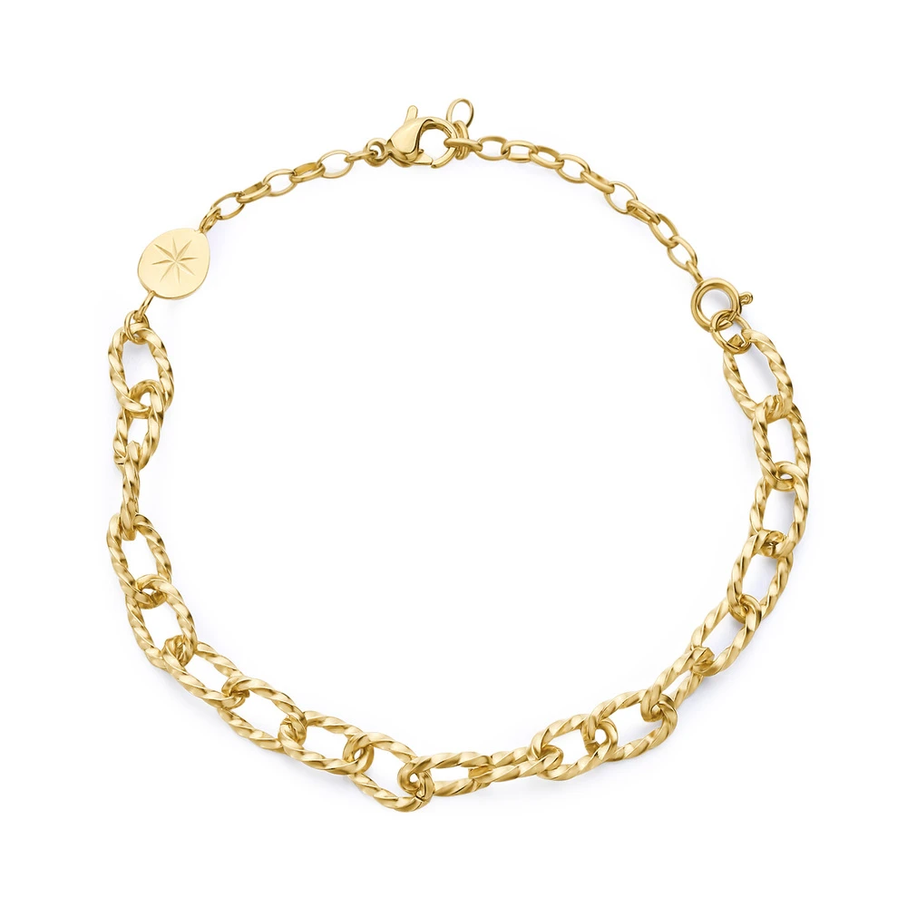 Náramok Brosway z kolekcie ESSENTIAL je vyrobený z chirurgickej ocele pozlátený technológiou PVD. Šperky vyrobené z chirurgickej ocele sú odolné proti poškriabaniu, nemenia farbu, neoxidujú, nevyvolávajú alergické reakcie ani nereagujú na pot a prach. Zapínanie náramku je na karabínku. Dĺžka náramku je 20 cm.