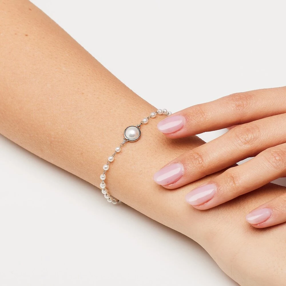 Moderný náramok z chirurgickej ocele zdobený umelou perlou. Povrch náramku je leštený. Náramok z chirurgickej ocele ideálnou voľbou na každodenné nosenie. Je hypoalergénny, farebne stály a odolný voči poškriabaniu aj vlhkosti – takže nestráca svoj lesk ani po rokoch. Zapínanie náramku je karabínové, dĺžka náramku 20cm.