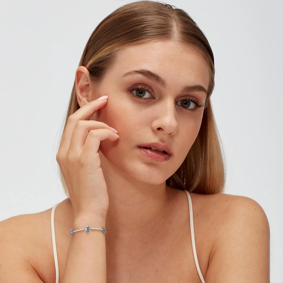 Strieborný náramok osadený prvotriednymi zirkónmi. Náramok je vyrobený zo striebra rýdzosti 925/1000 s porhodiovaným povrchom. Úprava povrchu náramku rhodiovaním zvyšuje jeho odolnosť a zaisťuje dlhodobý bezchybný vzhľad šperku. Zapínanie náramku je karabínové. Dĺžka náramku 16cm.