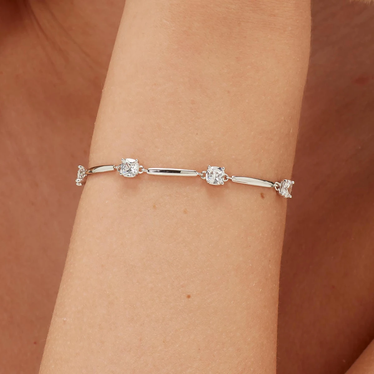 Strieborný náramok osadený prvotriednymi zirkónmi. Náramok je vyrobený zo striebra rýdzosti 925/1000 s porhodiovaným povrchom. Úprava povrchu náramku rhodiovaním zvyšuje jeho odolnosť a zaisťuje dlhodobý bezchybný vzhľad šperku. Zapínanie náramku je karabínové. Dĺžka náramku 16cm.