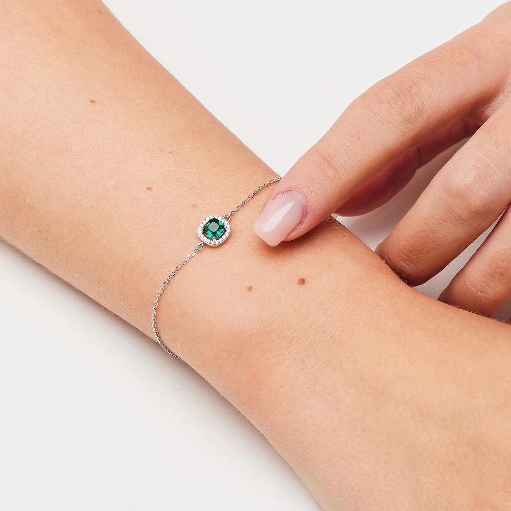 Strieborný náramok s kamienkami. Náramok je vyrobený zo striebra 925/1000, osadený prvotriednymi zirkónmi. Povrch náramku je porhodiovaný. Nanesené ródium dodáva šperku jasnú baru s leskom, zvyšuje odolnosť náramku proti poškriabaniu a zabezpečuje dlhodobý bezchybný vzhľad šperku. Náramok je dlhý 18 cm, zapínanie náramku je karabínové.