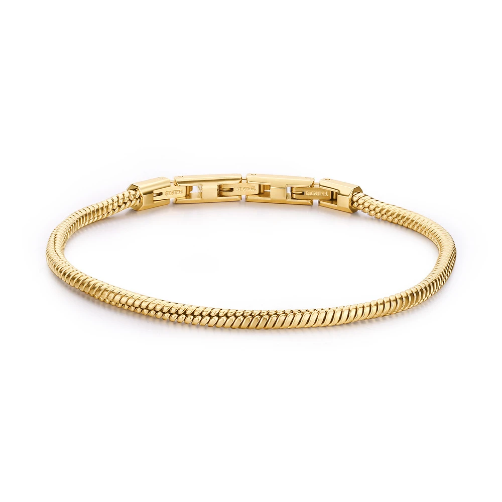 Náramok z chirurgickej ocele z kolekcie Brosway. Povrch náramku je pozlátený technológiou PVD a je dlhý 21,8 cm.