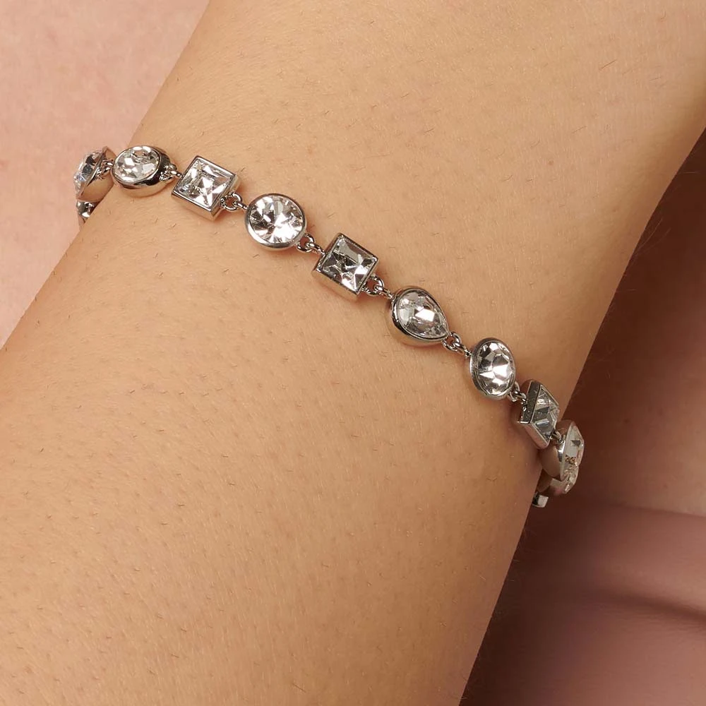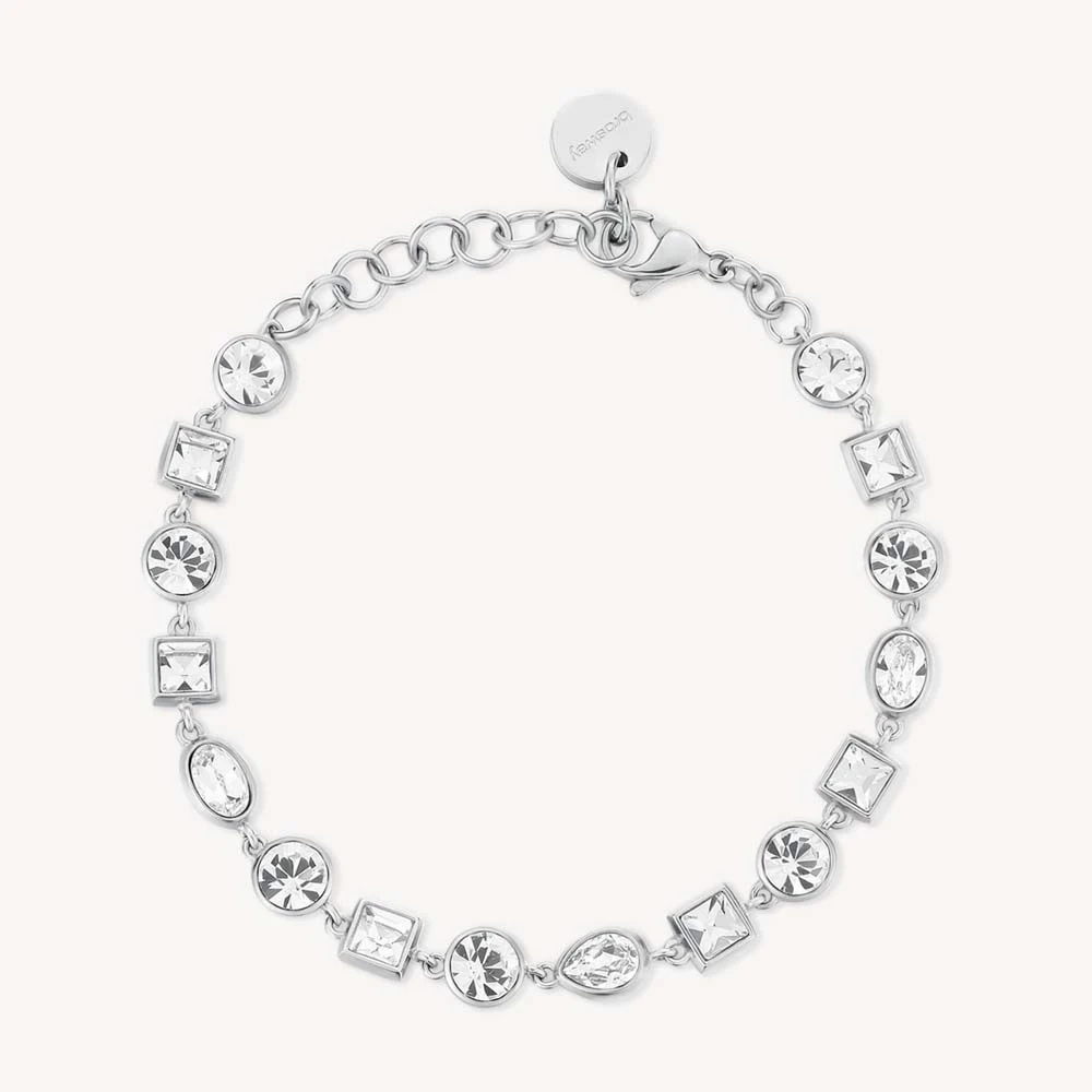 Dámsky náramok z chirurgickej ocele. Povrch náramku je leštený. Náramok je ozdobený žiarivými kryštálmi. Zapínanie náramku je karabínové, dĺžka náramku 19cm.
