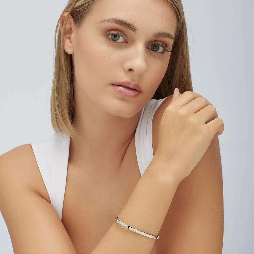 Dámsky náramok z chirurgickej ocele z kolekcie Brosway. Náramok má leštený povrch zvýraznený žiarivými kryštálmi. Priemer náramku 60mm.