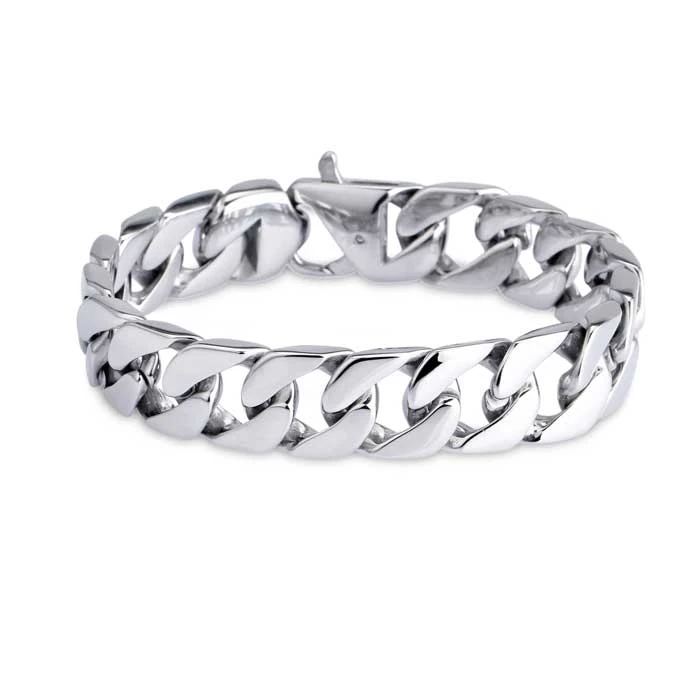 Pánsky oceľový náramok na ruku s lešteným povrchom. Náramok sa zapína pomocou masívne karabíny. Šírka náramku 15mm.