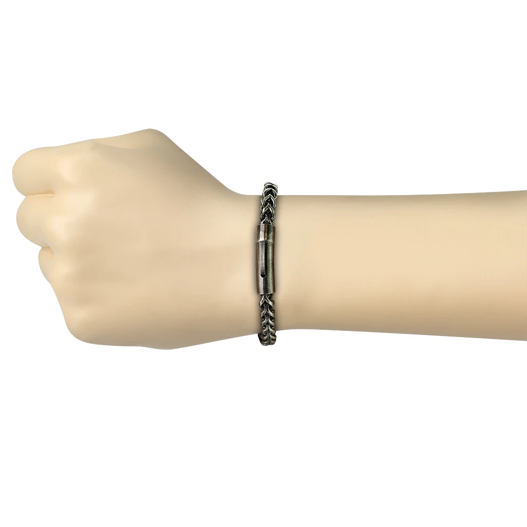 Pánsky náramok z chirurgickej ocele vo farbe pištoľovej šedi. Povrch náramku je farebne upravený technológiou PVD. Náramok je dlhý 22cm, priemer 6mm. Zapínanie náramku je systém bajonet.