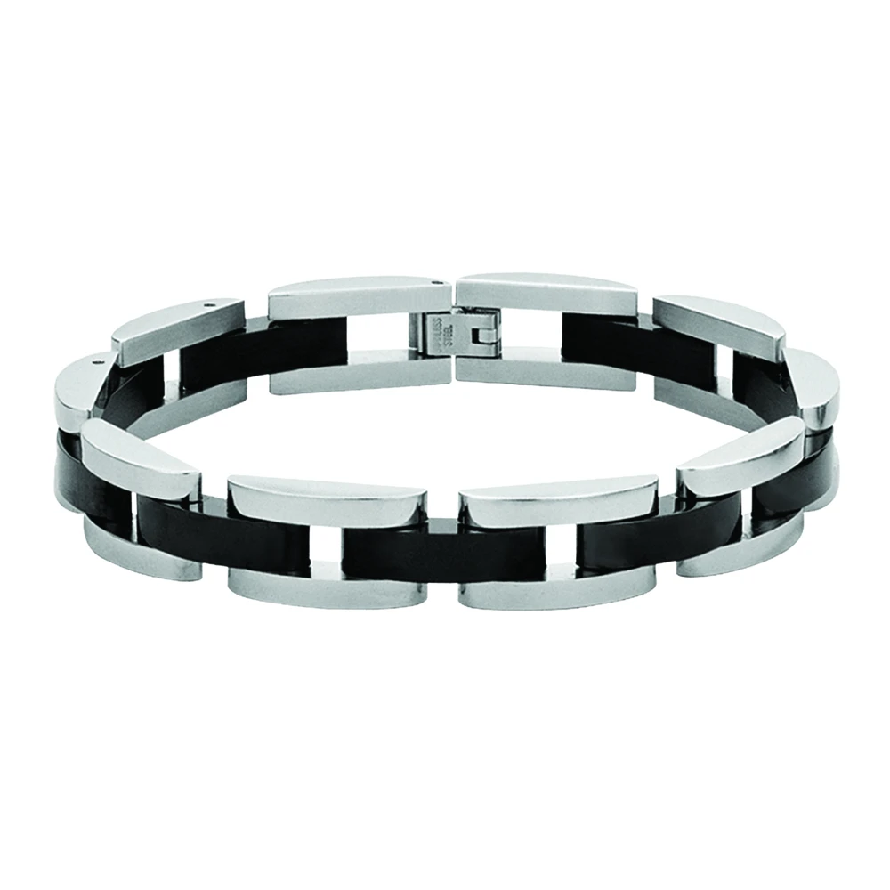 Pánsky náramok z chirurgickej ocele. Náramok má leštený povrch, stredové články sú farbené technológiou PVD. Náramok je široký 11 mm, dĺžka náramku 23 cm. Vďaka použitému materiálu je náramok odolný proti poškriabaniu a nevyvoláva alergické reakcie, bez obáv ho môžu nosiť osoby s citlivou pokožkou.