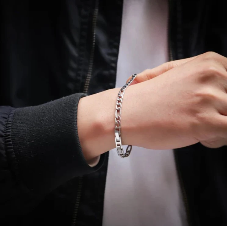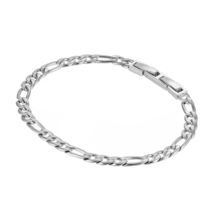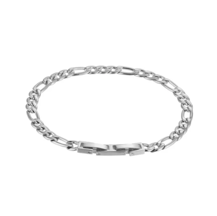 Náramok z chirurgickej ocele klasického vzoru figaro, ktorý nepodlieha módnym trendom a hodí sa k akémukoľvek oblečeniu. Vďaka použitej kvalitnej chirurgickej ocele je náramok odolný proti poškodeniu, nekoroduje a nevyvoláva alergické reakcie.