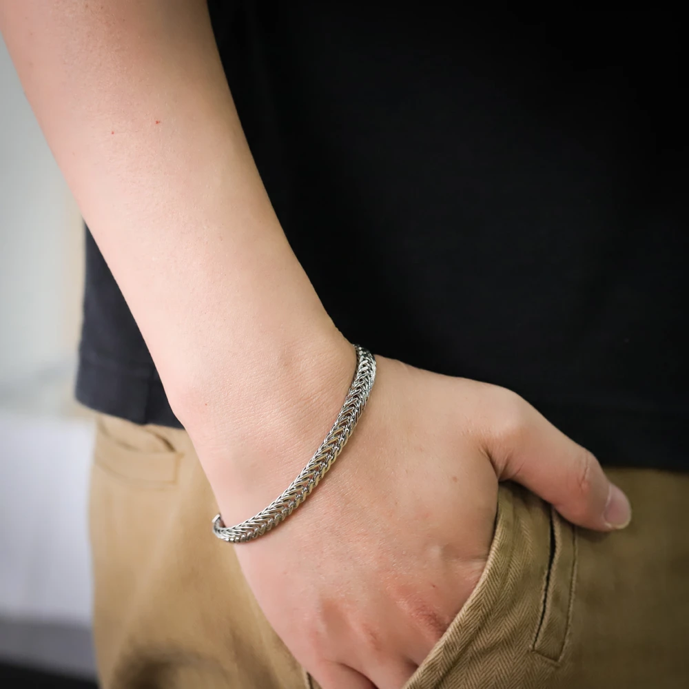 Náramok z chirurgickej ocele je ideálnou voľbou pre tých, ktorí hľadajú decentný, ale výrazný doplnok. Skvele sa hodí k formálnemu oblečeniu aj k ležérnemu outfitu. Vďaka použitej chirurgickej oceli je náramok odolný proti poškriabaniu, neoxiduje a je vhodný aj pre osoby s citlivou pokožkou. Tento náramok je skvelou voľbou pokiaľ hľadáte tip na darček – štýlový, praktický as dlhou životnosťou.