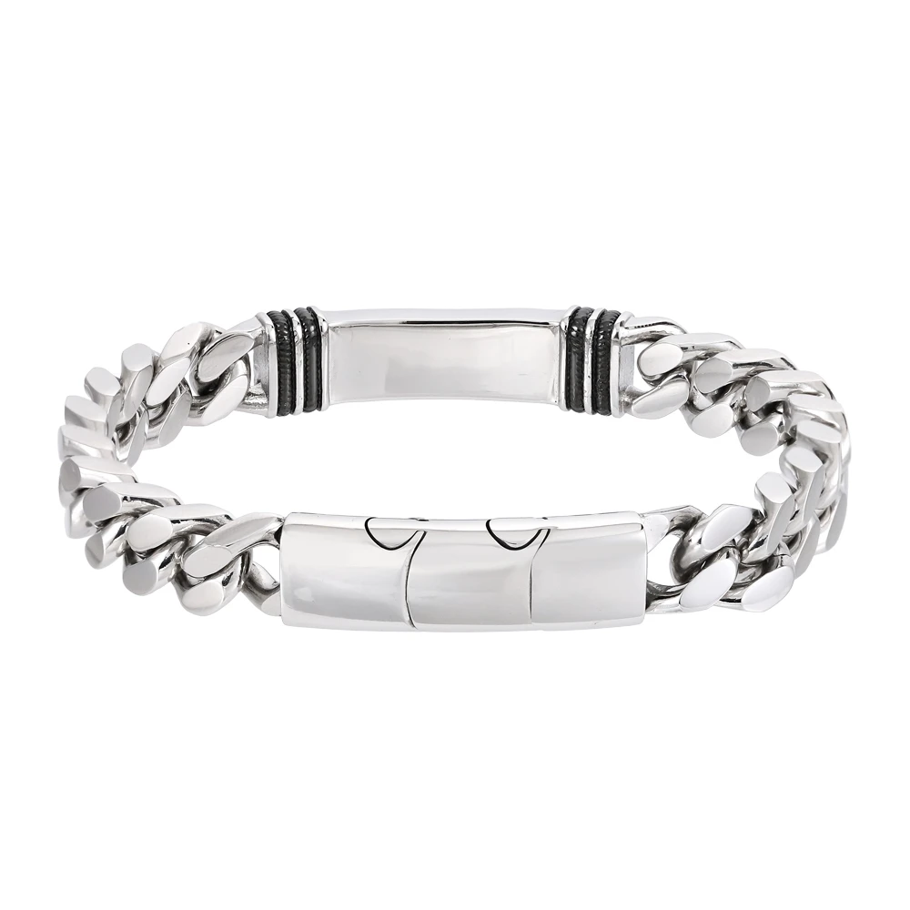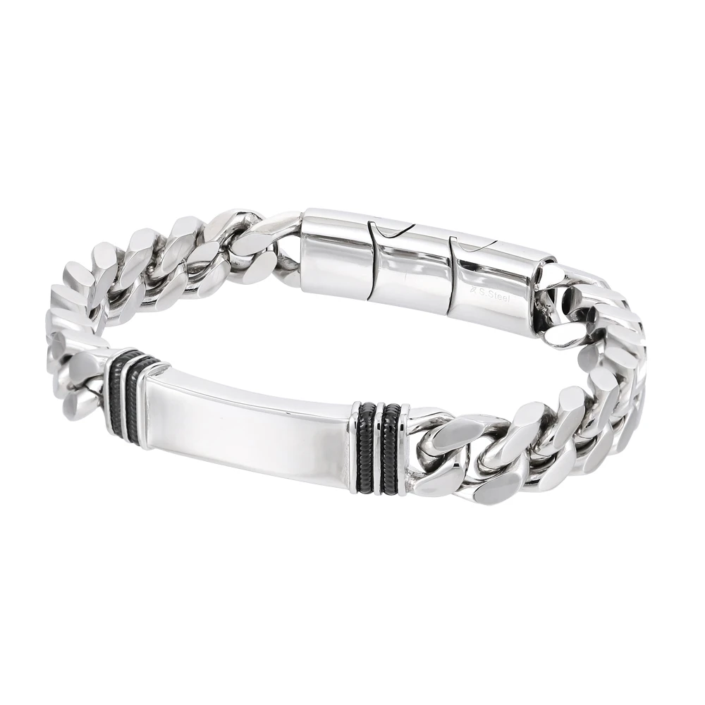 Pánsky náramok z chirurgickej ocele. Náramok má leštený povrch. Ozdobná doštička má rozmer 42 x 12 mm. Náramok je široký 12 mm, dĺžku náramku je možné vďaka šikovnému zapínaniu nastaviť v dĺžke 21 cm, alebo 22 cm. Vďaka použitému materiálu je náramok odolný proti poškriabaniu a nevyvoláva alergické reakcie, bez obáv ho môžu nosiť osoby s citlivou pokožkou.