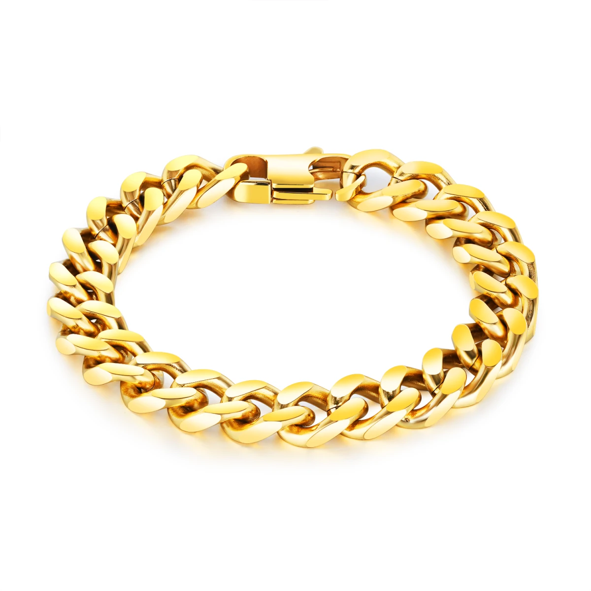Zlatý náramok na ruku z chirurgickej ocele. Náramok má leštený povrch pozlátený technológií IP. Oceľový náramok dlhý 21,5cm, šírka 12mm. Dĺžku náramku je možné na želanie bezplatne skrátiť.