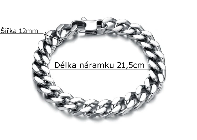 Náramok z chirurgickej ocele pre mužov so zapínaním na karabínu.