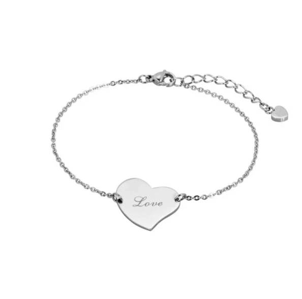 Jemný dámsky náramok z chirurgickej ocele so srdiečkom. Povrch náramku je leštěný. Srdiečko nesie nápis "Love". Rozmer srdiečka 18x15mm. Retiazkové časti náramku majú priemer 1,0 mm. Dĺžka náramku je možné nastaviť v rozmedzí 17-20cm. Náramok je dodávaný v originál semišovom sáčku s logom Inori.