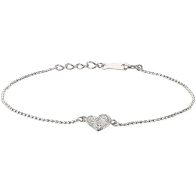 Jemný dámsky náramok z chirurgickej ocele so srdiečkom. Srdiečko je z jednej strany leštené, z druhej strany má vygravírovaný vzor kvetov. Rozmer srdiečka 13x7mm. Retiazkové časti náramku majú priemer 1,1 mm. Dĺžka náramku 20cm.