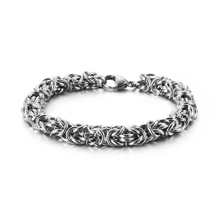 Náramok z chirurgickej ocele. Oceľové náramky sú stále veľmi obľúbené šperky predovšetkým pre ich typické vlastnosti. Náramky z chirurgickej ocele neoxidujú, nemenia farbu sú odolné proti poškodeniu a predovšetkým nevyvolávajú alergické reakcie. Tento krásny oceľový náramok v kráľovskej väzbe Vám bude robiť radosť po dlhú dobu.