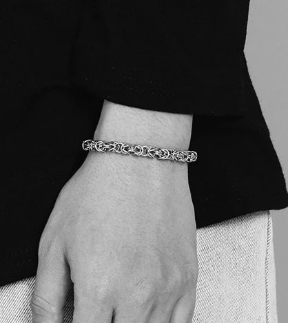 Oceľový náramok v kráľovskej väzbe. Náramok má karabínové zapínanie. Priemer náramku 7mm, dĺžka náramku 20,5cm.