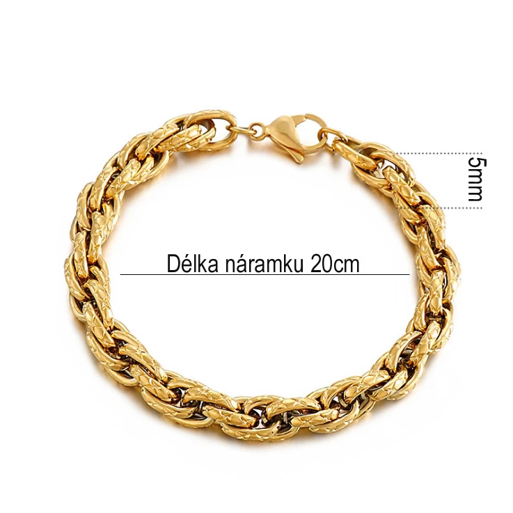 Náramok na ruku z chirurgickej ocele. Povrch náramku je leštený. Náramok má priemer 5mm, dĺžka náramku 20cm. Zapínanie náramku je karabínové. Na prianie je možné dĺžku náramku zadarmo skrátiť.