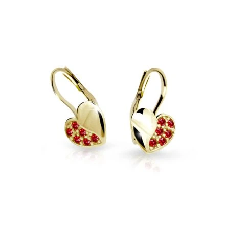 Náušnice pre deti zo zlata 585/000. Krásne dievčenské náušnice s klopou na chlopni. Luxusný vzhľad detských náušníc je podčiarknutý jasnými kameňmi. Všetky šperky Cutie Jewellery sú vyrobené v Českej republike a dnes sú tieto šperky známe takmer po celom svete. Rovnako ako všetky zlaté šperky, tieto detské náušnice sú tiež označene dla puncoveho zakona. Náušnice su dadavane v originálne krabičke Cutie Jewellery.