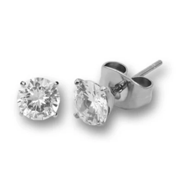 Náušnice kôstky z chirurgickej ocele zdobené prvotriednym zirkónom. Náušnicové zapínanie je na puzety. Priemer zirkónu 6mm.