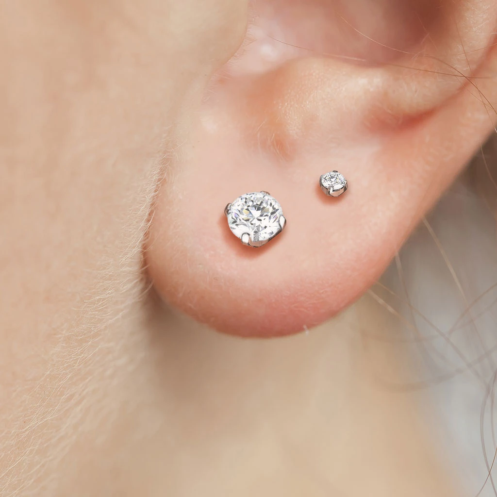 Titánové náušnice kôstky so zirkónmi. Zapínanie náušníc je na puzety z chirurgickej ocele. Driek náušníc má priemer 0,7 mm, dĺžka drieku 9 mm. Uvedená cena platí za pár.