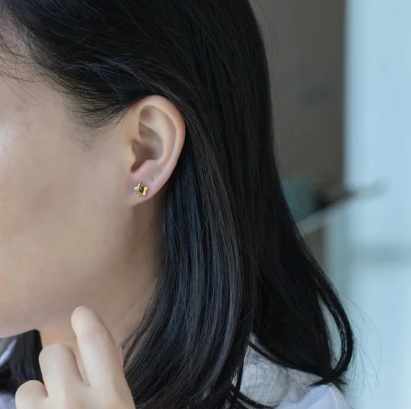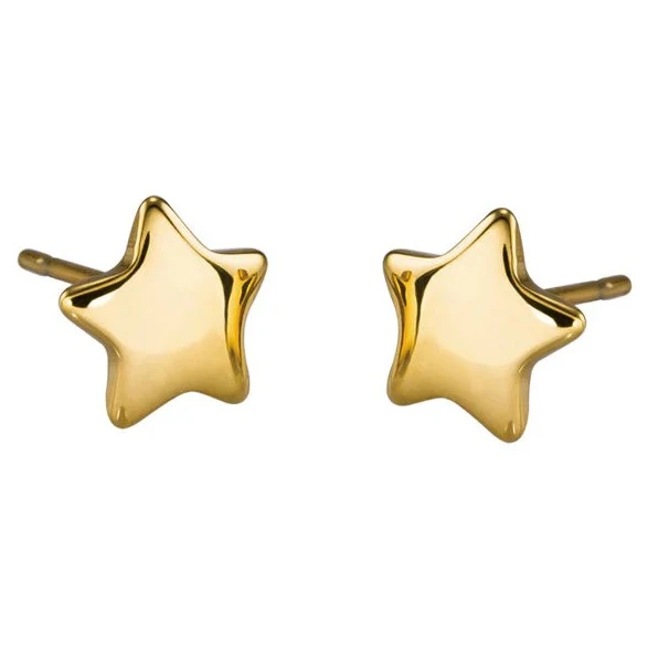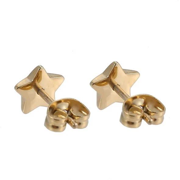 Náušnice hviezdičky z pozlátenej chirurgickej ocele. Povrch náušnice je leštený, pozlátenie je prevedené technológiou PVD. Použitá chirurgická oceľ garantuje dlhodobý bezchybný vzhľad náušníc. Priemer náušníc 7mm. Náušnicové zapínanie je na puzetky. Uvedená cena platí za pár.
