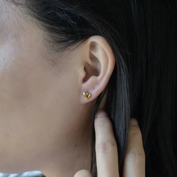 Náušnice srdiečka z pozlátenej chirurgickej ocele. Povrch náušníc je leštený, pozlátenie je prevedené technológiou PVD. Použitá chirurgická oceľ garantuje dlhodobý bezchybný vzhľad náušníc. Rozmery náušníc nájdete zobrazené na podpornej fotografii. Náušnicové zapínanie je na puzetky. Uvedená cena platí za pár.