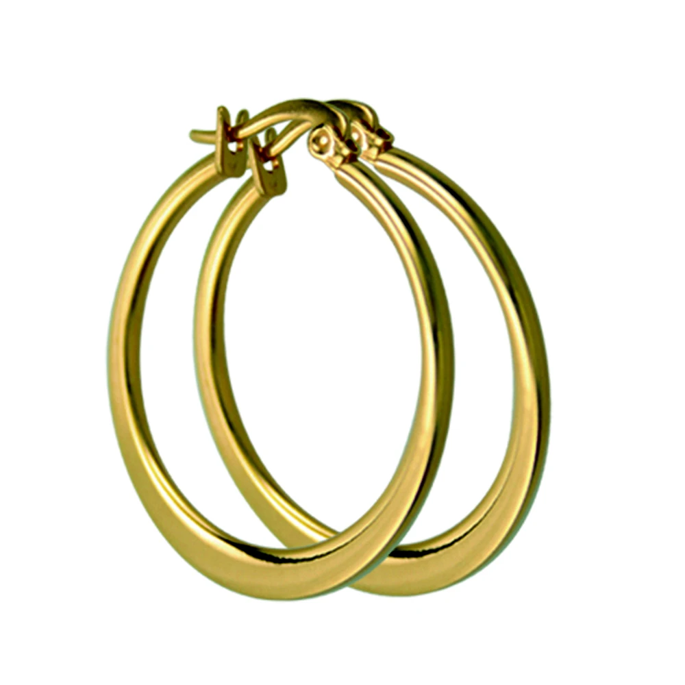 Kruhové náušnice z chirurgickej ocele. Povrch náušníc je leštený pozlátený techlogiou PVD. Náušnice majú vonkajší priemer 32mm. Náušnicové zapínanie je na francúzsky zámok.