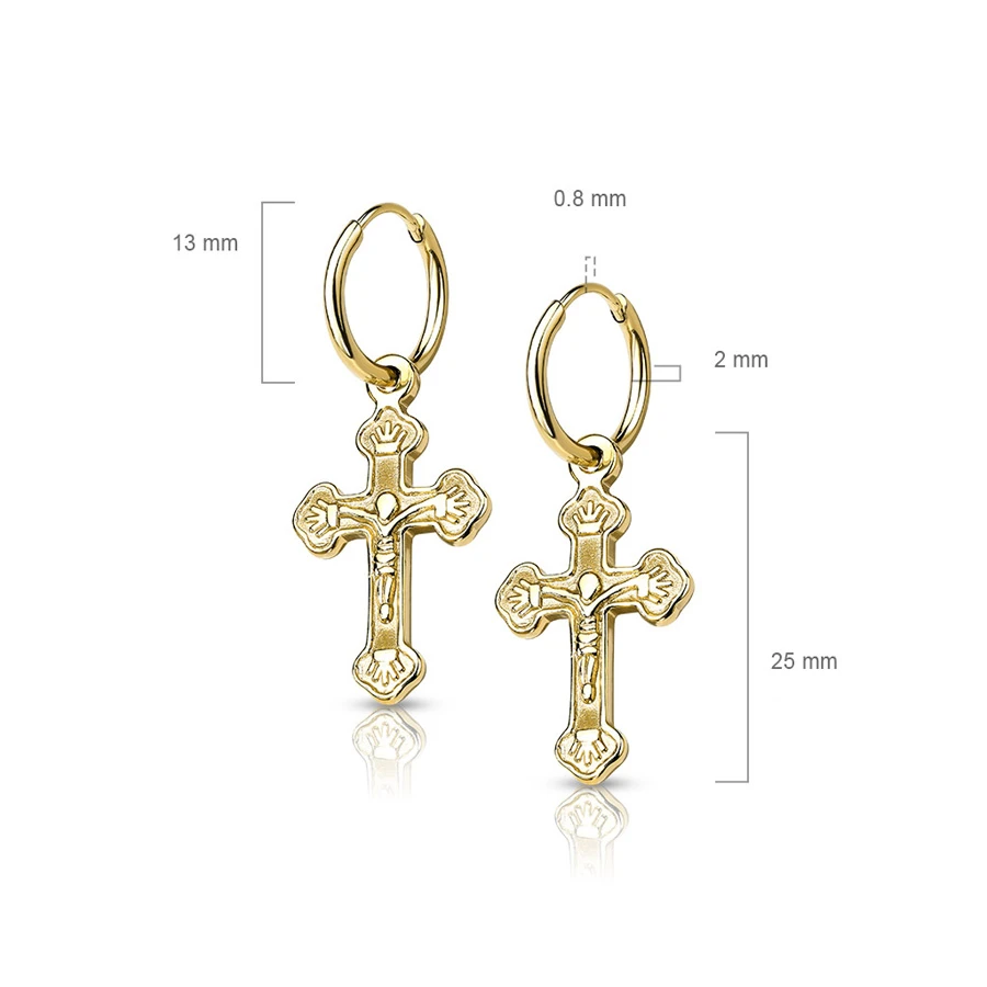 Náušnice z chirurgickej ocele krúžky s krížikom. Rozmery náušníc v mm nájdete zobrazené na podpornej fotografii.