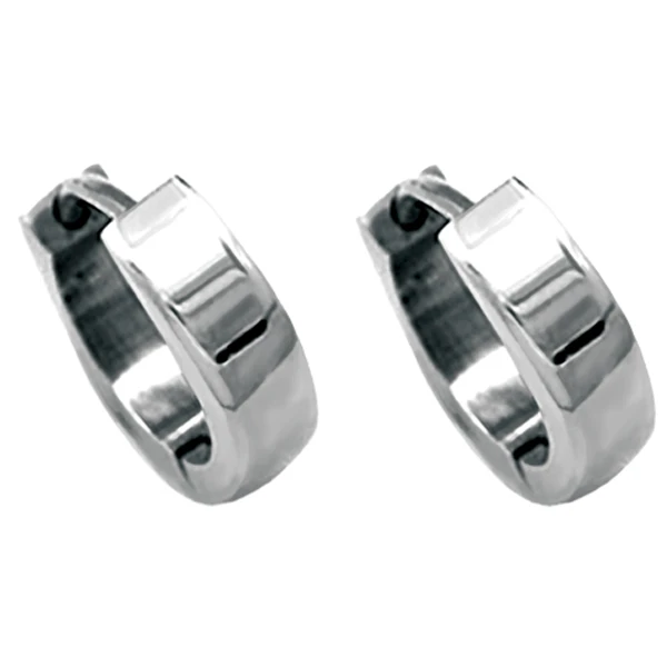 Oceľové náušnice krúžky s lešteným povrchom. Vonkajší priemer náušníc 13mm, šírka krúžku 4mm. Náušnicové zapínanie je na kĺb.