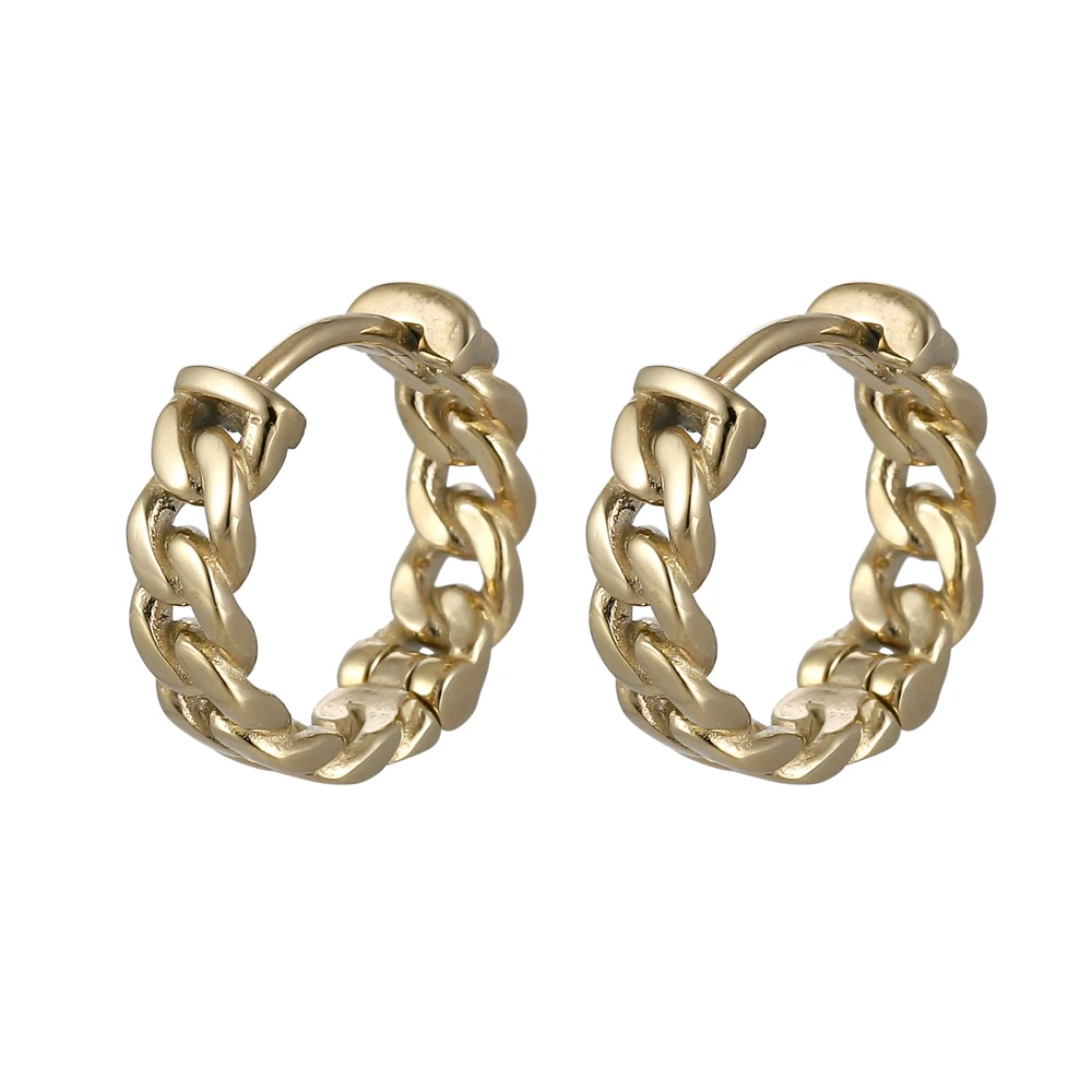 Moderné náušnice krúžky. Povrch náušníc je pozlátený technológiou PVD. Náušnice sú široké 4mm, vnútorný priemer náušníc 12mm, vonkajší priemer 15mm. Náušnicové zapínanie je kĺbové. Uvedená cena platí za pár.