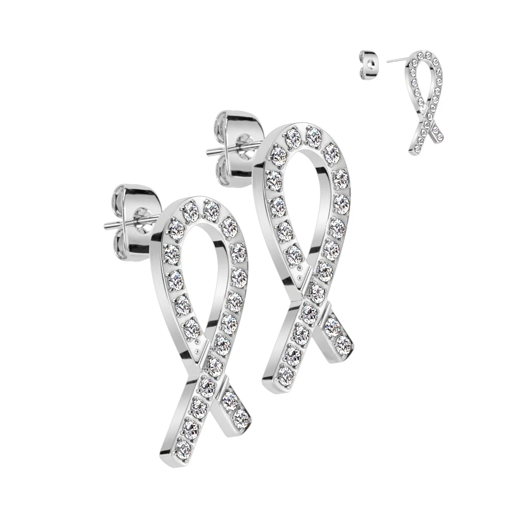 Oceľové náušnice zdobené zirkónmi. Jednoduché náušnice kôstky, ktoré sa hodia na každú príležitosť.