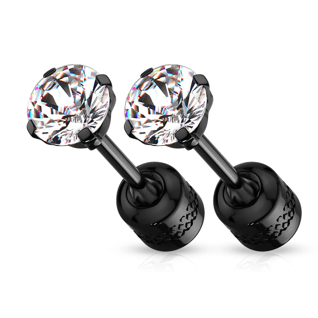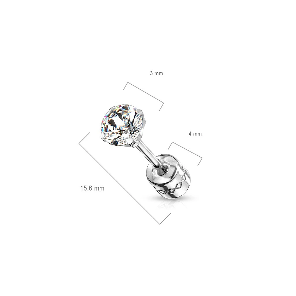 Náušnice na skrutku z chirurgickej ocele. Náušnice majú na skrutky kamienok. Skrutkovacie časť má priemer 4 mm. Kamienok je možné zvoliť v priemere 3,4,5 mm.
