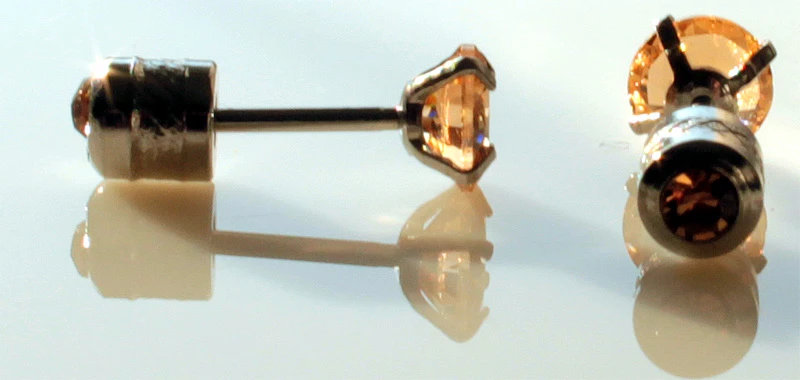 Náušnice na skrutku z chirurgickej ocele. Náušnice majú na skrutky kamienok. Skrutkovacie časť má priemer 4 mm. Kamienok je možné zvoliť v priemere 3,4,5 mm.